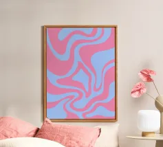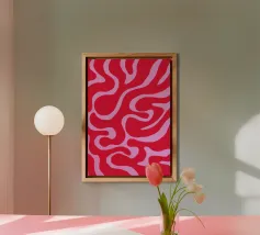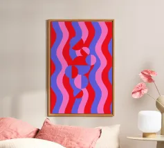 Forme ondulate color blocking rosa, rosso, viola alluminio dibond con Cornice Artbox