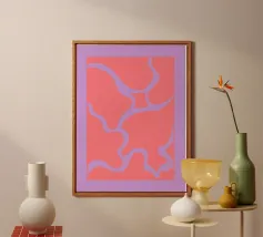Elevate il vostro spazio con un'accattivante opera d'arte moderna caratterizzata da forme astratte in vivaci tonalità rosse, rosa e viola. Aggiungete un tocco di raffinatezza e vivacità al vostro arredamento con questo splendido pezzo. Perfetto per gli appassionati d'arte che cercano un'eleganza contemporanea.