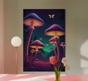 Funghi bioluminescenti e lucciole nella notte della foresta alluminio dibond