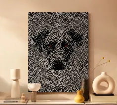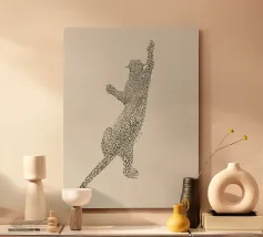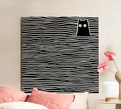 L'ombra di un gatto pieno di vita: Questo motivo gioca con la tensione tra una silhouette chiara e un disegno organico a labirinto. Lo stile ricorda la line art di Keith Haring, ma è più sottile, più giocoso, quasi meditativo. Le innumerevoli microforme invitano a soffermarsi, creando dinamismo in una situazione di stasi. Una dichiarazione visiva per gli spazi creativi e gli amanti dei gatti, in audace equilibrio tra ordine e caos.