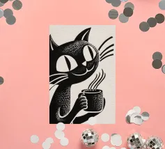 Questo affascinante lavoro combina la tradizione artigianale con l'umorismo contemporaneo. La tecnica del tratteggio e i netti contrasti in bianco e nero ricordano le stampe espressioniste e i cartoni animati di Felix the Cat degli anni Venti. Gli occhi sporgenti del gatto e la tazzina fumante raccontano il desiderio mattutino di caffeina, un sentimento universale degli animali domestici e dei proprietari di gatti. Le linee precise e la consistenza della carta conferiscono all'opera un'autentica sensazione di fatto a mano. Tecnicamente brillante, concettualmente spiritoso, visivamente irresistibile, per i drogati di caffè e gli amanti dei gatti.
