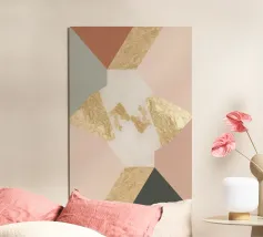 Gold Geometric Pattern on Textured Brown Background alluminio dibond