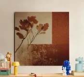 Una calda composizione astratta con texture di terracotta e delicate ombre di piante. I toni dorati della terra evocano la tranquilla bellezza dell'autunno, rendendo quest'opera d'arte una scelta elegante per gli interni che abbracciano la calma, l'intimità e il fascino naturale senza tempo.