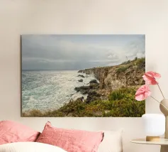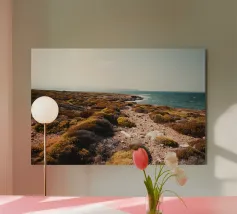Questa splendida fotografia cattura un sereno paesaggio costiero. Perfetta per gli appassionati di natura e per coloro che apprezzano la tranquilla bellezza degli ambienti costieri, questa immagine conferisce un senso di pace e di splendore naturale a qualsiasi spazio.