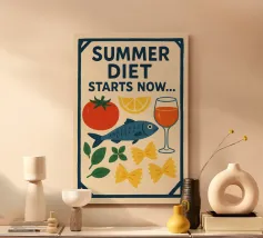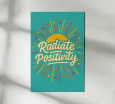 Un poster con citazioni di ispirazione vintage, con toni verdi e arancioni brillanti incorniciati da un bordo retrò ondulato. Progettato per portare positività e colore in qualsiasi spazio moderno.
