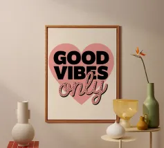 Questo vibrante poster digitale presenta la frase universalmente positiva "GOOD VIBES" in un carattere in grassetto, allegro e in stile bolla. Reso in una deliziosa tonalità di rosa su un nitido sfondo bianco, il design emana un'estetica divertente e retrò che ricorda l'era dell'anno 2000. Questo poster digitale di alta qualità, offerto a 7000x5000 pixel e 300 dpi, porta un'arte eccellente e un'energia edificante e di tendenza in qualsiasi spazio.