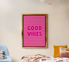 GOOD VIBES - Pink Retro Bubble Font Art Print alluminio dibond con Cornice Artbox
