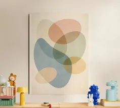 Dieses moderne Kunstwerk verbindet klare Formen mit sanften Farbverläufen in Apricot, Rosé und Petrolblau. Die reduzierte Komposition mit zwei halbkreisförmigen Flächen schafft Ruhe, Balance und stilvolle Ästhetik. Perfekt für moderne Interiors, skandinavische Einrichtungen und alle, die ruhige Wandkunst mit Farbakzent lieben.