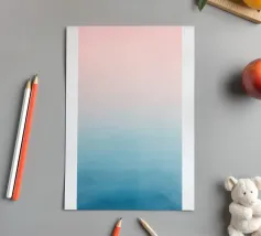 Delicata sfumatura di colore in rosa e blu pastello che cattura l'atmosfera calma del mare all'alba. Perfetto come sfondo rilassante o per dettagli sottili e fluidi. Minimalista e armonioso per un design d'interni rilassato.