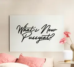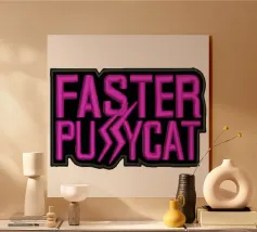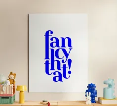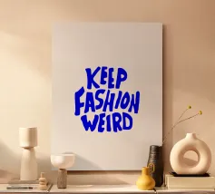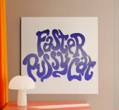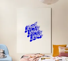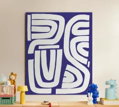 Questa vivace opera d'arte da parete presenta uno stile tipografico audace e groovy ispirato all'estetica retrò degli anni '70, con lettere lisce e ondulate riempite da un sorprendente gradiente blu-viola.
