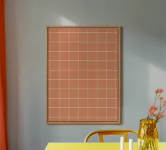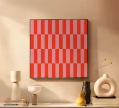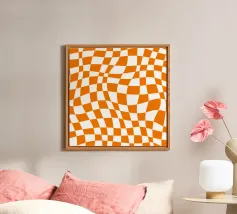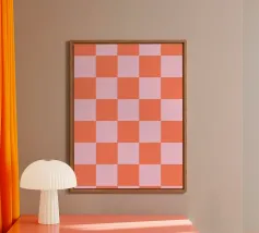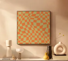 Alzate il tiro con questo design retrò a scacchiera rosso-arancio. I quadri e i blocchi di colore vivaci sono una dichiarazione audace, in equilibrio tra lo stile nostalgico degli anni '70 e il minimalismo moderno. Un pezzo d'arte da parete eclettico perfetto per aggiungere calore, energia e design vibrante all'arredamento della vostra casa.