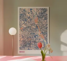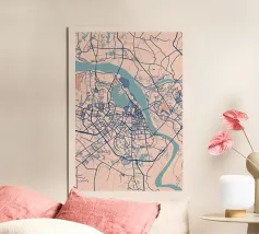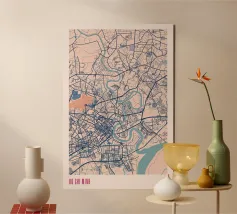 Questa elegante mappa di Hanoi mostra l'energia fluida della capitale vietnamita. Con linee pulite, colori vivaci e dettagli precisi, riflette la vita vibrante e i corsi d'acqua della città - un'opera d'arte moderna per gli amanti della cultura urbana.