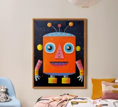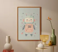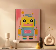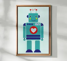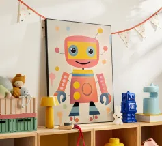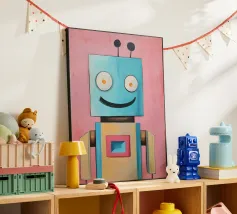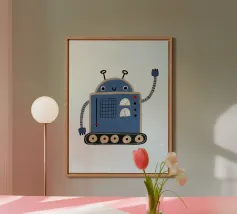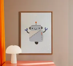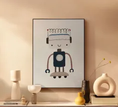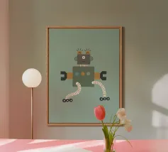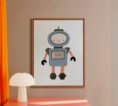 Quale bambina o bambino non vorrebbe avere Robi come amico? Come poster stampato, Robi è un vero e proprio richiamo visivo, e non solo nella stanza dei bambini. I colori vivaci e la struttura retrò creano un fascino del tutto particolare.