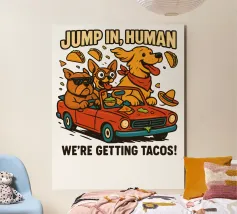 Due procioni con occhiali da sole viaggiano allegramente su un'auto rossa, con uno sfondo giocoso e colorato. La didascalia recita: "Io non sono strano, tu sei noioso".