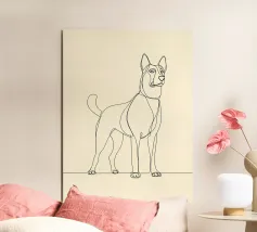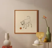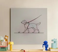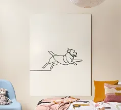 Il cane gioca con una palla in un ambiente interno caldo alluminio dibond