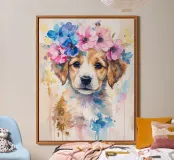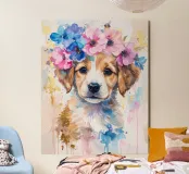 Questo design moderno raffigura un simpatico cucciolo con dei fiori sulla testa. Disegnato con delicati acquerelli e accenti dorati, unisce la bellezza naturale all'eleganza artistica. Le morbide sfumature di colore e lo stile astratto conferiscono a qualsiasi ambiente un'atmosfera romantica e giocosa, ma allo stesso tempo elegante: un vero e proprio colpo d'occhio per la vostra casa.