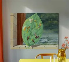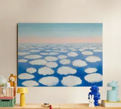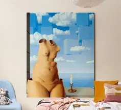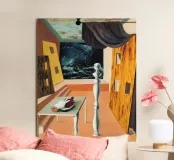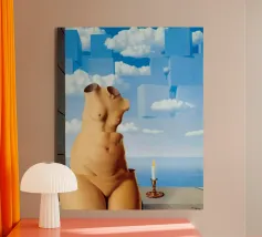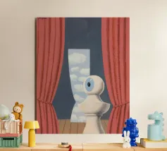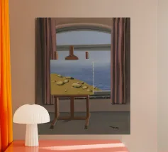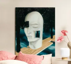 Questo sorprendente dipinto surrealista di René Magritte raffigura una scena di tensione e ambiguità, combinando elementi realistici con accostamenti inaspettati che sfidano la percezione. Attraverso un'attenta composizione e sottili contrasti, Magritte evoca un senso di incertezza, introspezione e mistero poetico. L'atmosfera onirica e stimolante dell'opera la rende un'aggiunta accattivante a soggiorni, studi, studi creativi e interni moderni, dove la sua presenza enigmatica può ispirare riflessioni e conversazioni.
