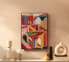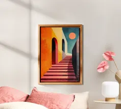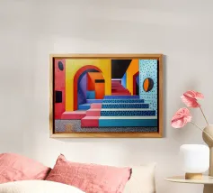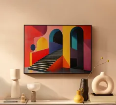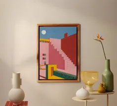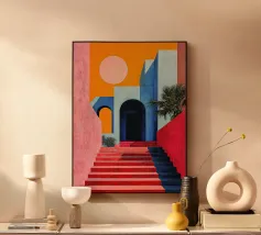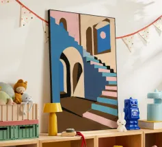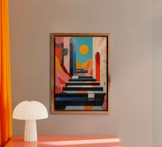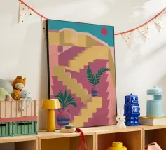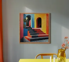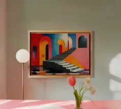 Illustrazione di una scala in colori pastello alluminio dibond con Cornice Artbox