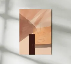 Uno stile minimalista è impiegato utilizzando forme geometriche e colori tenui per creare una composizione astratta. Le sottili texture e le variazioni di tonalità aggiungono profondità al pezzo, pur mantenendo una semplicità complessiva.