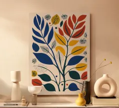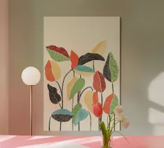 Elegante design retrò con foglie dai colori caldi e uno slogan ispiratore. Porta vibrazioni positive nella vostra casa - perfetto come decorazione o regalo.