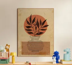 Japandi Sun & Branch | Abstract Botanical Poster Art alluminio dibond