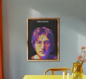 Una rappresentazione luminosa e artistica di John Lennon, con morbide tonalità al neon che sottolineano il suo sguardo calmo e riflessivo.