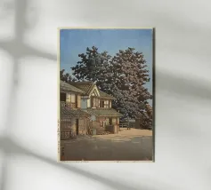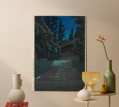 "Tōkyō Nijū Kei, Kanda Myōjin Keidai" di Kawase Hasui cattura lo spirito vibrante di Tokyo con una rappresentazione serena ma dettagliata dello storico santuario di Kanda Myōjin. Il magistrale gioco di luci e prospettive di Hasui evidenzia l'armonia tra l'architettura tradizionale e la natura circostante, creando un tranquillo paesaggio urbano. Perfetta per gli amanti dell'arte giapponese, dei paesaggi storici e delle stampe shin-hanga tradizionali, quest'opera aggiunge profondità culturale ed eleganza senza tempo a qualsiasi interno.