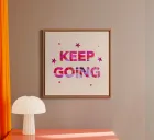 The "Keep Going" design combines clear typography with a minimalist layout and inspires perseverance and positive energy. The lettering in bold red tones sets a strong accent and makes the design a modern statement for creative and determined spaces.