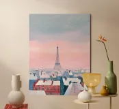 L'inverno a Parigi I tetti innevati e il bagliore della Torre Eiffel alluminio dibond