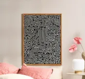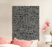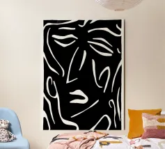Un volto fatto di linee: Quest'opera trasforma un ritratto in un labirinto grafico. I contorni bianchi su sfondo nero ricordano la Op Art, la tipografia Bauhaus e l'arte vettoriale digitale. L'opera gioca con la percezione e l'identità - ridotta, ritmica, enigmatica. Un'immagine che non solo si guarda, ma che vuole essere decifrata. Un richiamo ideale per ambienti luminosi e minimalisti, progettati per coniugare intelletto ed estetica.