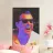 Un uomo con gli occhiali da sole ride gioioso, con una vistosa illuminazione al neon e la scritta "LIVING MY BEST LIFE" accanto a lui.