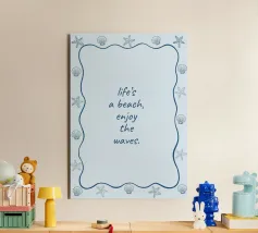 Un design che si adatta al motto della vita. LA VITA È UNA SPIAGGIA. TROVA LA TUA ONDA. La vita è bella. Trova la tua strada, anche se a volte è un po' turbolenta. Una tipografia minimalista con un tocco di colore colorato addolcisce la vostra giornata.