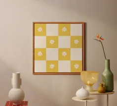 Light yellow checks and lines alluminio dibond con Cornice Artbox