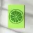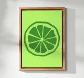 Una fetta di lime verde stilizzata, dalle linee decise e pulite, spicca su uno sfondo verde più chiaro. Il design semplice enfatizza gli spicchi e la scorza del lime.