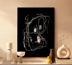 Forme e linee organiche moderne in pennellate bianche e nere con sfondo beige. Opera d'arte astratta in stile minimalista. L'opera d'arte minimalista si adatta bene a uno stile di vita moderno, essenziale, bohémien e industriale. Se vi piace la semplicità e l'eleganza.