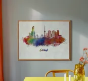 Lo skyline di Seul in acquerello alluminio dibond