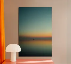 Un albero solitario si erge ai margini di un tranquillo paesaggio da sogno, dove il cielo di colore verde acqua si fonde con un orizzonte beige che sussurra. L'immobilità minimalista di quest'opera d'arte evoca solitudine, introspezione e la sottile forza della natura sospesa nel tempo.