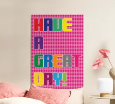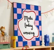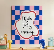 Motivo a scacchi blu e rosa con lo slogan "Make today amazing".