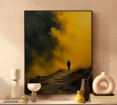 man stand in yellow shade alluminio dibond con Cornice Artbox