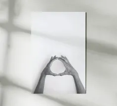 Mani protese verso la luce in un ambiente minimalista alluminio dibond