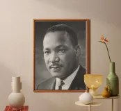 Questo suggestivo ritratto di Martin Luther King Jr. cattura la sua potente presenza e il suo spirito visionario. Conosciuto per la sua leadership nel Movimento per i diritti civili, egli simboleggia la giustizia, l'uguaglianza e la speranza. Quest'opera d'arte rende omaggio al suo messaggio duraturo di non violenza, coraggio e unità, che ha ispirato generazioni a sognare un mondo migliore e più giusto.