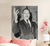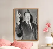 Questo suggestivo ritratto di Martin Luther King Jr. cattura la sua potente presenza e il suo spirito visionario. Conosciuto per la sua leadership nel Movimento per i diritti civili, egli simboleggia la giustizia, l'uguaglianza e la speranza. Quest'opera d'arte rende omaggio al suo messaggio duraturo di non violenza, coraggio e unità, che ha ispirato generazioni a sognare un mondo migliore e più giusto.