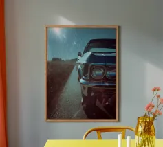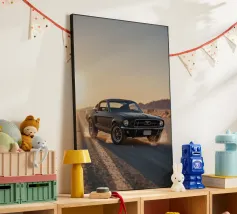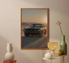 Matte Black 1967 Mustang in the Open Desert alluminio dibond con Cornice Artbox
