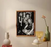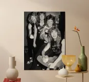Una foto promozionale in bianco e nero di una band seduta davanti a una batteria. I membri sono in posa giocosa con grandi sorrisi e un linguaggio del corpo rilassato, con la scritta "Anthrax" in basso.