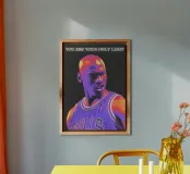 Un ritratto colorato al neon di un giocatore di basket in maglia Bulls con la citazione "You are your only limit", che simboleggia determinazione e fiducia in se stessi.