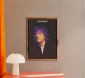 Un vibrante ritratto di Mick Jagger in audaci toni viola e arancioni, che conferisce un'atmosfera artistica classica ma moderna.