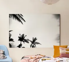 Minimal Palm - Calma tropicale in bianco e nero alluminio dibond