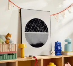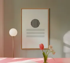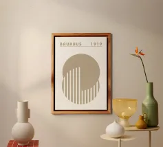 Minimalist geometric artwork lines and circles in sage green alluminio dibond con Cornice Artbox
