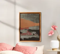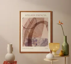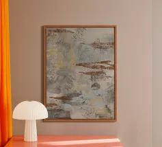 Modern abstract artwork in beige, rust, gray and brown alluminio dibond con Cornice Artbox