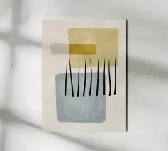 Arte digitale astratta caratterizzata da linee, forme organiche e geometriche con texture e pennellate nere nei toni tenui del marrone, del verde salvia e del beige. Arte moderna per interni essenziali, scandinavi, bohémien e boho. Godetevi l'arte digitale minimalista con forme e linee morbide.